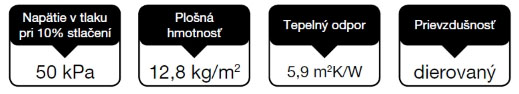 Napätie v tlaku pri 10% stlačení: 50 kPA Klasifikácia reakcie na oheň: sadrová platňa => A2 tepelnoizolačná platňa => E